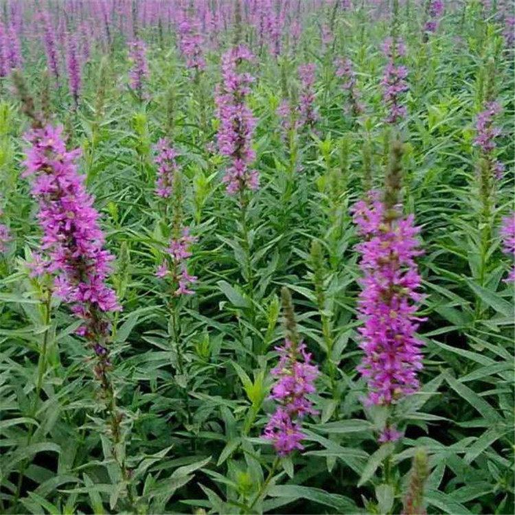 千屈菜又叫水枝柳、水柳、對葉蓮等,多年水生宿根草本植物,植株高約1米,直立生長,主桿上有許多分枝,葉子對生,披針形。葉子長4~6cm,寬1cm左右??偁罨ㄐ蹰L在最上面,長約30cm,花朵簇生。喜歡溫暖濕潤陽光充足的環(huán)境,在我國南方和北方地區(qū)都有野生的,生長在沼澤、湖畔、池塘等淺水地區(qū)。它耐寒性強,在山東、河南、北京等地均可自然越冬,霜降以后地面部分枯死,地下部分進入泥土休眠,在淺水的河邊和低洼潮濕的地方生長態(tài)勢最好,對土壤的要求不嚴。千屈菜的生命力極強,管理也可粗放,栽培的環(huán)境只要保證光照充足、通風(fēng)良好即可,在生長期要經(jīng)常打頂促使其矮化分蘗,長出豐滿茂密的株型。